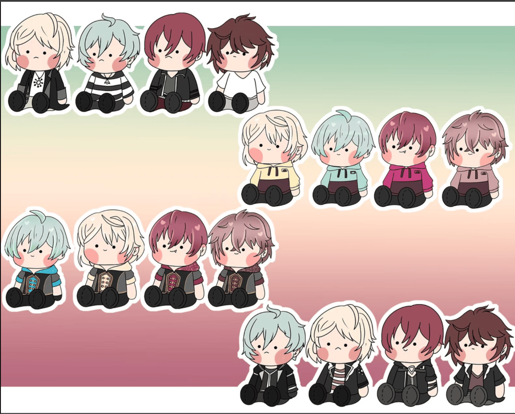 3 inch tall plush baby style Zool members with holographic shiny film coating.