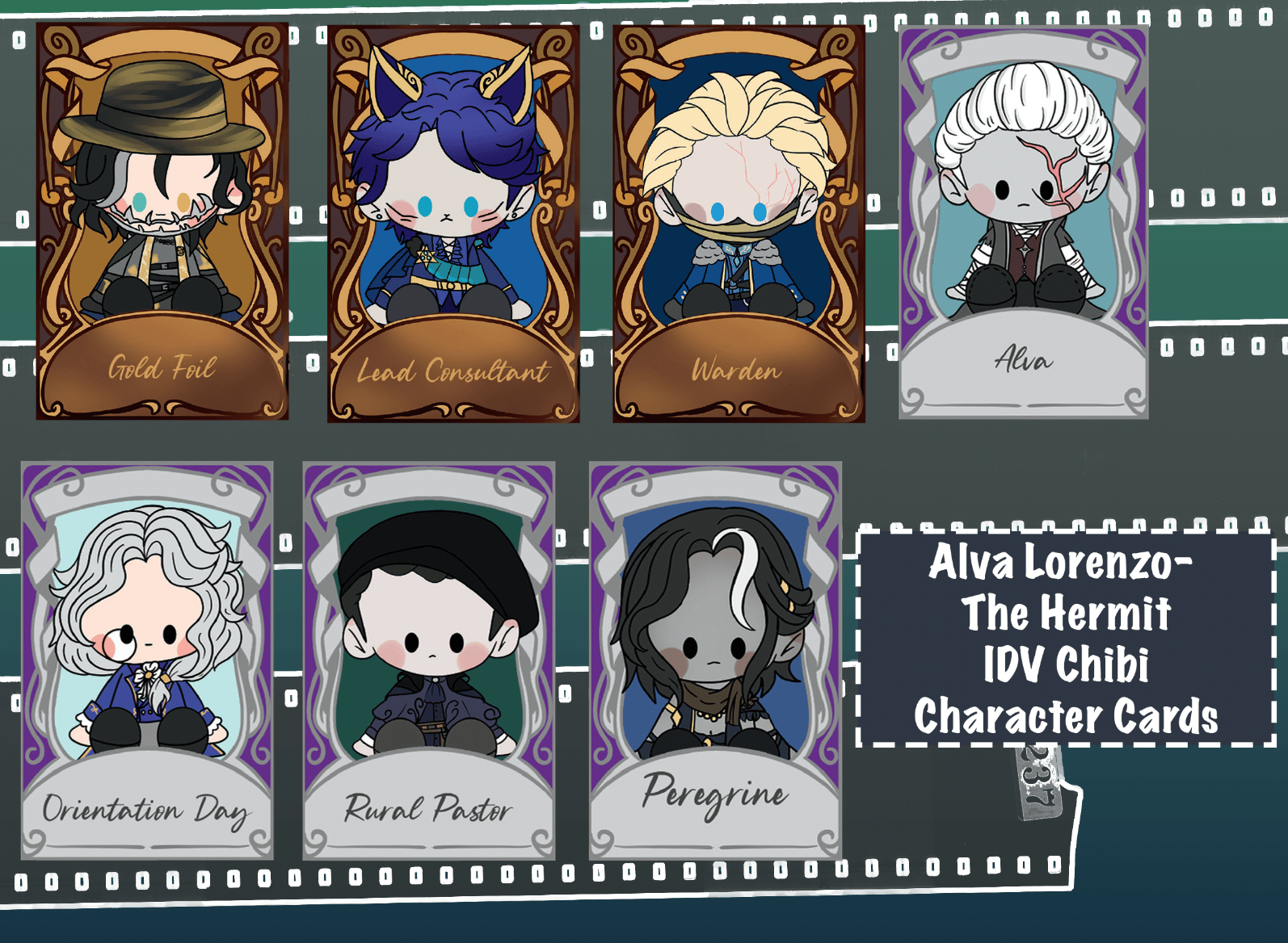 8.5cm x 5.5cm (3.5 inches x 2 inches) size holographic character cards of Alva Lorenzo's A and S tier skins.