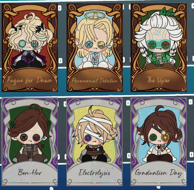 8.5cm x 5.5cm (3.5 inches x 2 inches) size holographic character cards of the Prisoner's A and S tier skins.