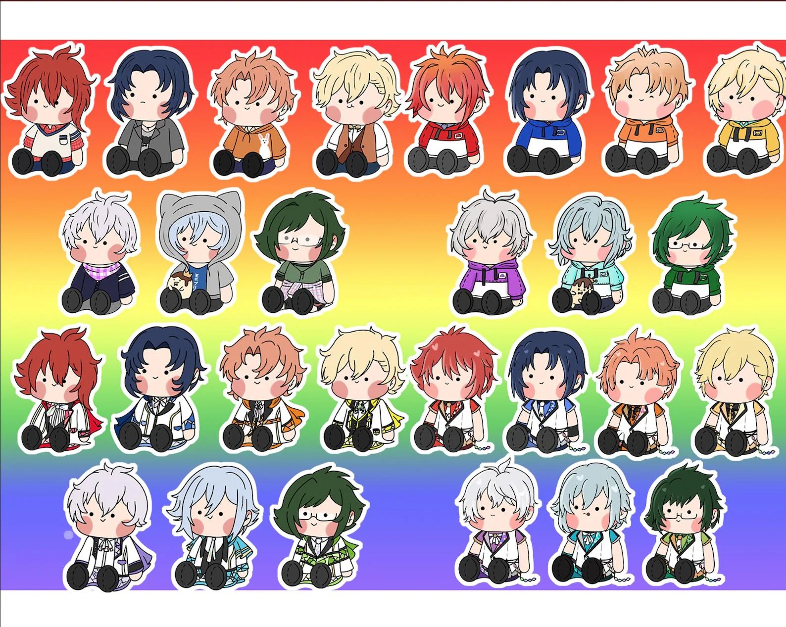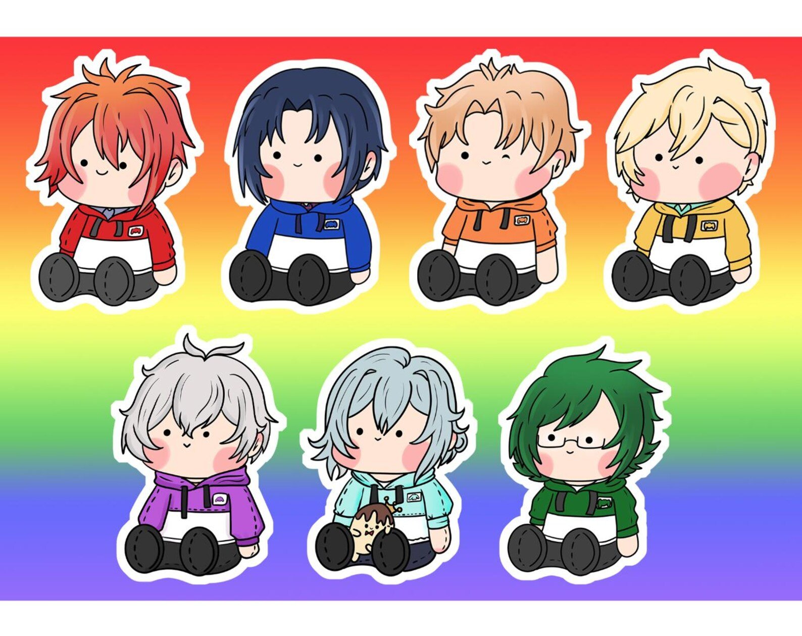 3 inch tall plush baby style Idolish7 character stickers with sparkly film coating