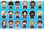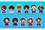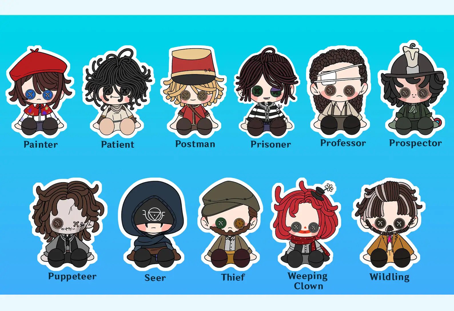 3 Inch tall plush baby style stickers of the male survivors from Identity5, with sparkly holographic film
