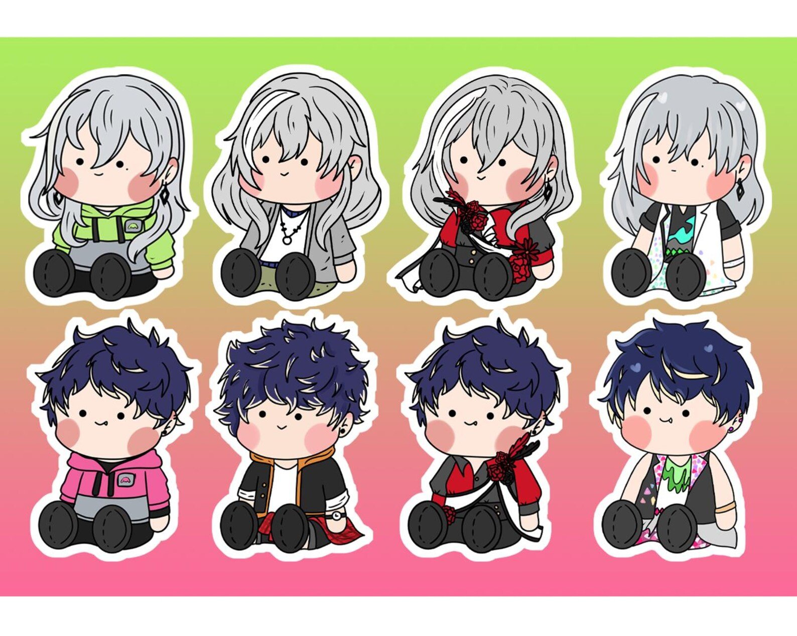 3 inch tall plush baby style stickers of Re:Vale with sparkly holographic film